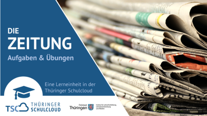 Als Vorbereitung auf die Aktionstage "Journalismus macht Schule" bietet das ThILLM in Kooperation mit der TLM und den thüringischen Zeitungsverlagen eine Lerneinheit mit dem Titel "Die Zeitung - Aufgaben & Übungen" an. Diese Lerneinheit steht in drei Niveaustufen zur Verfügung und ist somit sowohl für den Primarbereich, die Sekundarstufe I als auch die Sekundarstufe II geeignet.