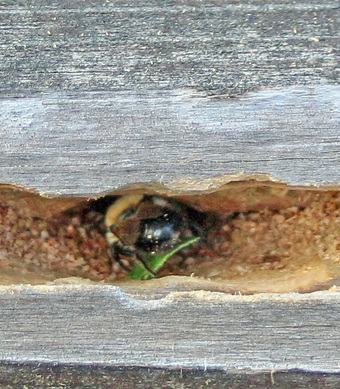Das Foto gehört zur Serie "Bienen". Es zeigt eine Blattschneiderbiene (Megachile), auch Tapezierbiene genannt. Blattschneiderbienen bauen ihr Nest in Hohlräume, zum Beispiel Totholz, und tapezieren diese mit abgeschnittenen Blattstücken aus. Es gelten die Nutzungsbedingungen der Mediothek und Pixiothek.