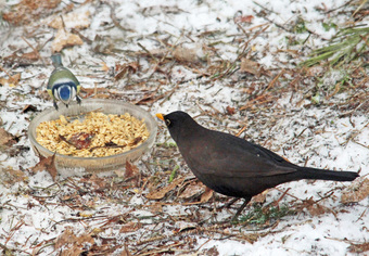 Das Foto hehört zur Serie "Amseln". Es zeigt eine Amsel (Turdus merula), auch Schwarzdrossel genannt, eine Vogelart der Familie der Drosseln. Die Männchen sind schwarz gefärbt und haben einen gelben Schnabel, das Gefieder der Weibchen ist größtenteils dunkelbraun. Es gelten die Nutzungsbedingungen der Mediothek und Pixiothek.