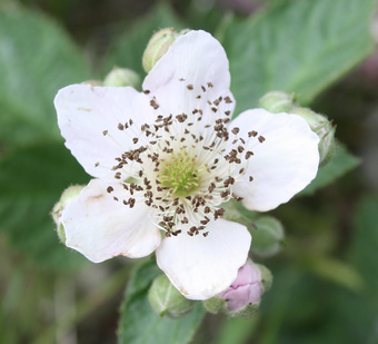 Das Foto hehört zur Serie "Blüten". Es zeigt die Blüte der Brombeere (Rubus sectio Rubus). Zu sehen ist eine radialsymmetrische Blüte mit fünf Kronblättern und vielen Staubblättern. Es gelten die Nutzungsbedingungen der Mediothek und Pixiothek.
