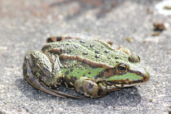 Teichfrosch auf der Mauer