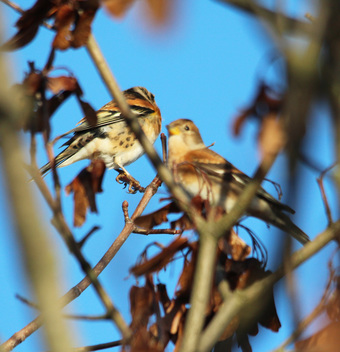 Das Foto hehört zur Serie "Finken". Es zeigt zwei Bergfinken oder Nordfinken (Fringilla montifringilla). Es gelten die Nutzungsbedingungen der Mediothek und Pixiothek.