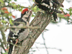 Buntspecht, Jungvogel und Altvogel