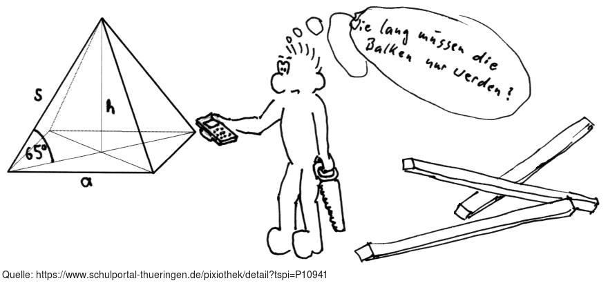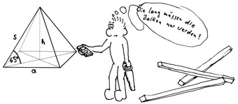 Das Bild gehört zur Serie "Paul". Es zeigt Paul bei Berechnungen an einer Pyramide mit dem Satz des Pythagoras. Das Bild ist unter CC0 lizenziert und kann somit frei verwendet werden.