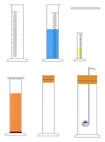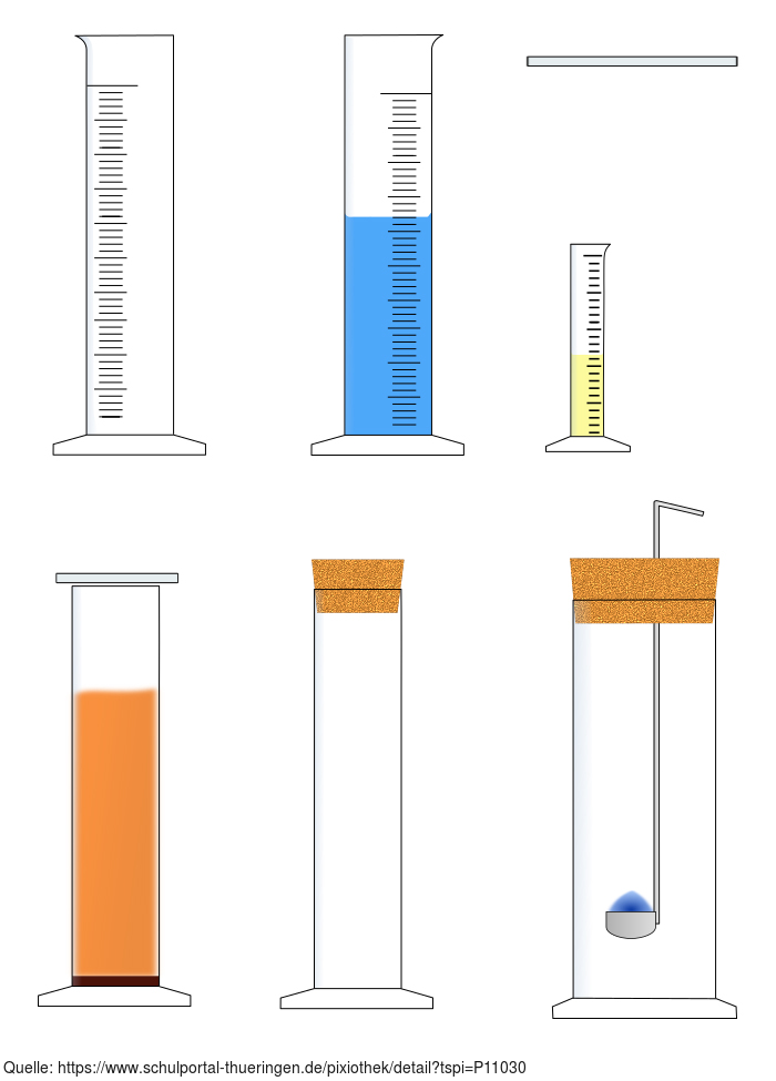 Das Bild gehört zur Serie "Chemie Grafiken". Es zeigt verschiedene Standzylinder und Messzylinder zur Gestaltung von Arbeitsblättern. Das Bild ist unter CC0 lizenziert und kann somit frei verwendet werden.