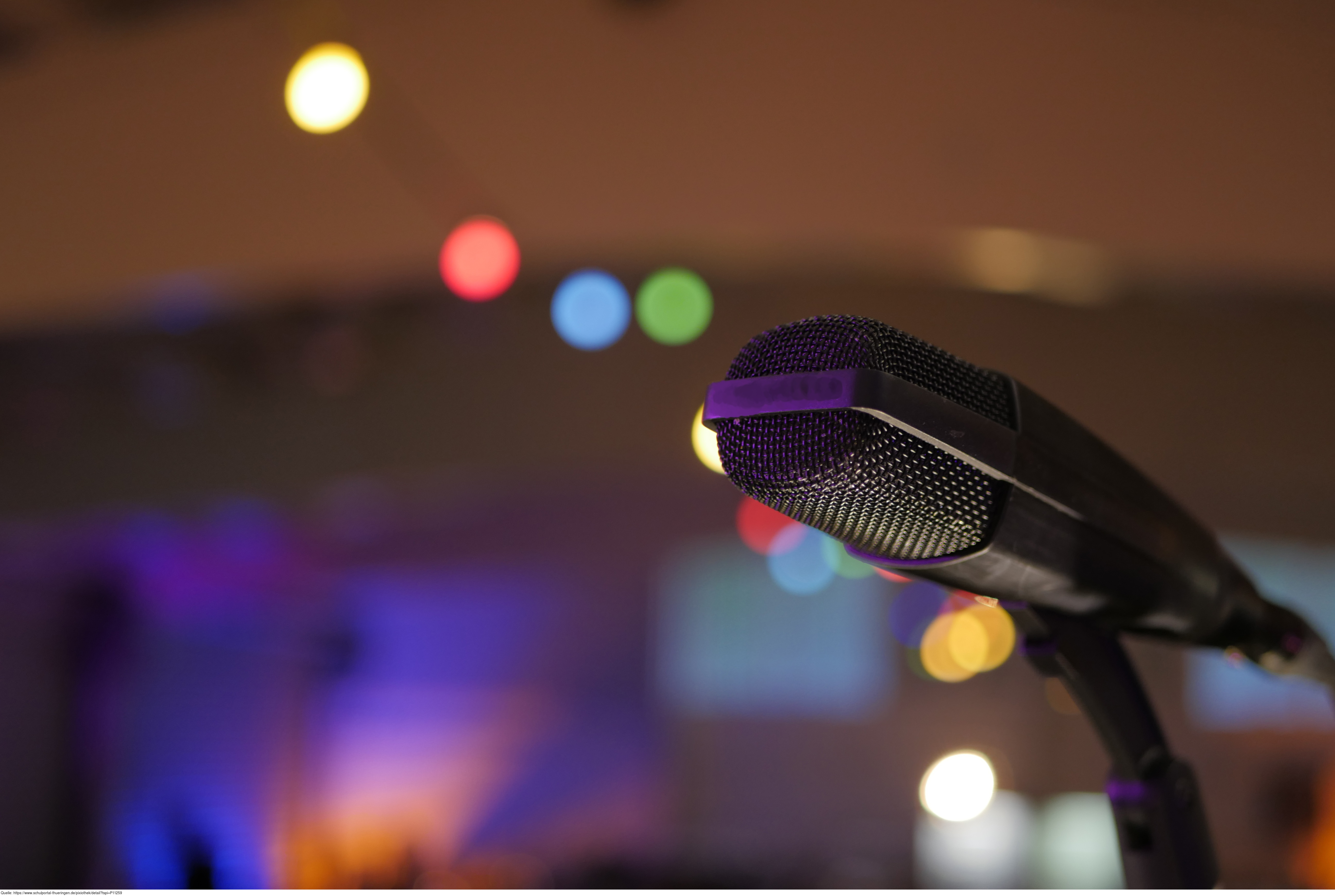 Das Bild gehört zur Serie "Tontechnik". Es zeigt ein Mikrophon auf einer Bühne. Das Bild ist unter CC0 lizenziert und kann somit frei verwendet werden.