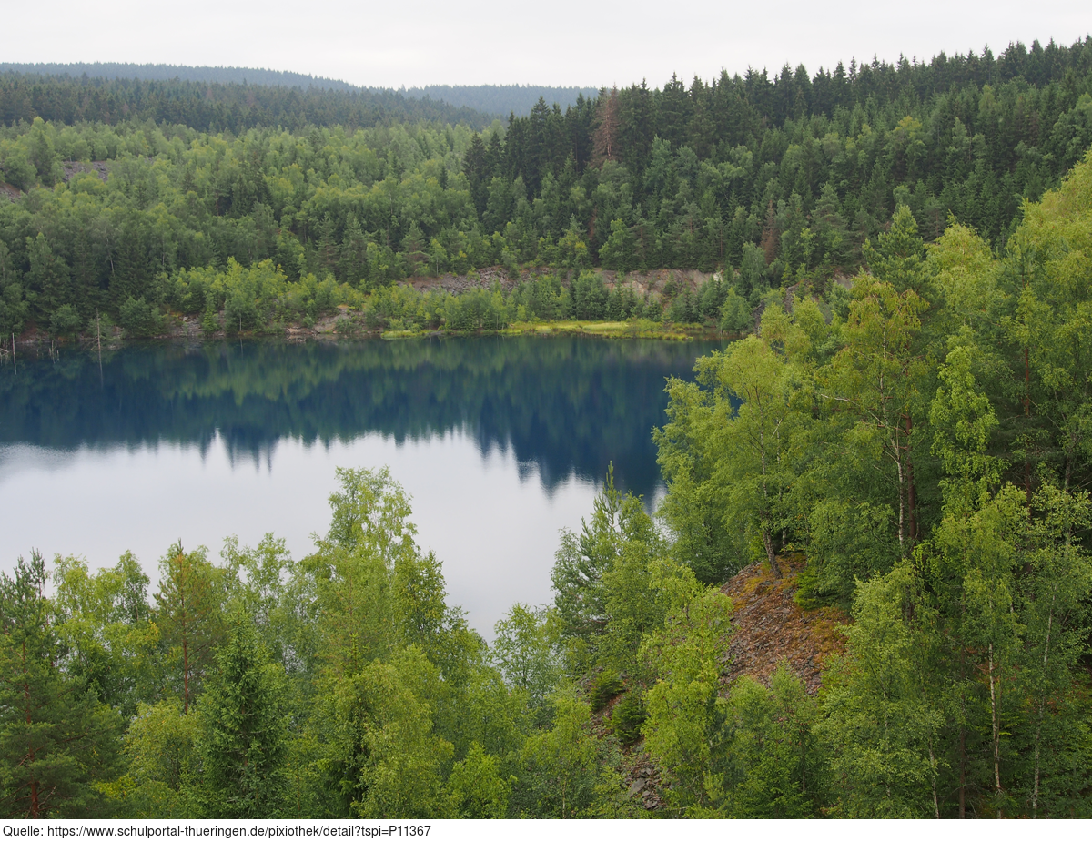 Das Bild gehört zur Serie "Thüringischer Schieferpark Lehesten". Es zeigt einen Blick auf das artenreiche Naturschutzgebiet rund um den ehemaligen Tagebau und das heutige technische Denkmal. Es gelten die Nutzungsbedingungen der Mediothek und Pixiothek.