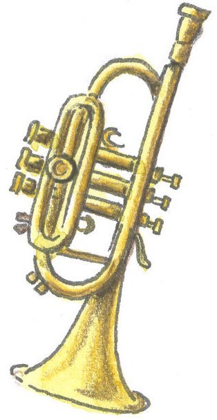 Das Bild gehört zur Serie "Musikinstrumente". Es zeigt eine gezeichnete Trompete. Es gelten die Nutzungsbedingungen der Mediothek und Pixiothek.
