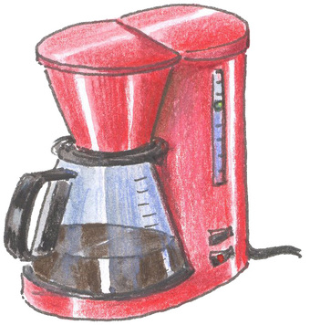 Das Bild gehört zur Serie "Kaffee". Es zeigt eine gezeichnete Kaffeemaschine. Es gelten die Nutzungsbedingungen der Mediothek und Pixiothek.