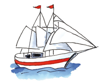 Das Bild gehört zur Serie "Schifffahrt". Es zeigt ein gezeichnetes Segelschiff auf dem Meer. Es gelten die Nutzungsbedingungen der Mediothek und Pixiothek.