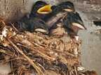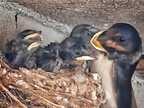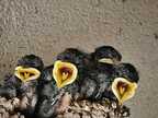 Junge Rauchschwalben bei der Fütterung