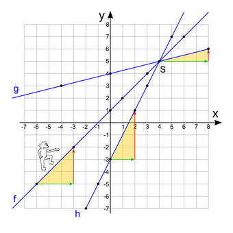 Das Bild gehört zur Serie "Mathematik, lineare Funktionen". Es zeigt im Koordinatensystem drei lineare Funktionen. Die Funktionsgleichungen sind zu ermitteln. Weiterhin können Koordinaten von Schnittpunkten und Nullstellen abgelesen werden. Das Bild steht in den Ausführungen normal, leichte Hilfen, und mehrfache Hilfen zur Verfügung. Das Bild ist unter CC0 lizenziert und kann somit frei verwendet werden.
