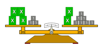 Das Bild gehört zur Serie "Mathematik, Gleichungen". Es veranschaulicht die Lösung einer linearen Gleichung durch Äquivalenzumformung mit dem Bild einer Waage. Zur Gleichung 22 veranschaulichen die Bilder 22-1 bis 22-4 die Umformungsschritte. Das Bild ist unter CC0 lizenziert und kann somit frei verwendet werden.