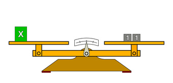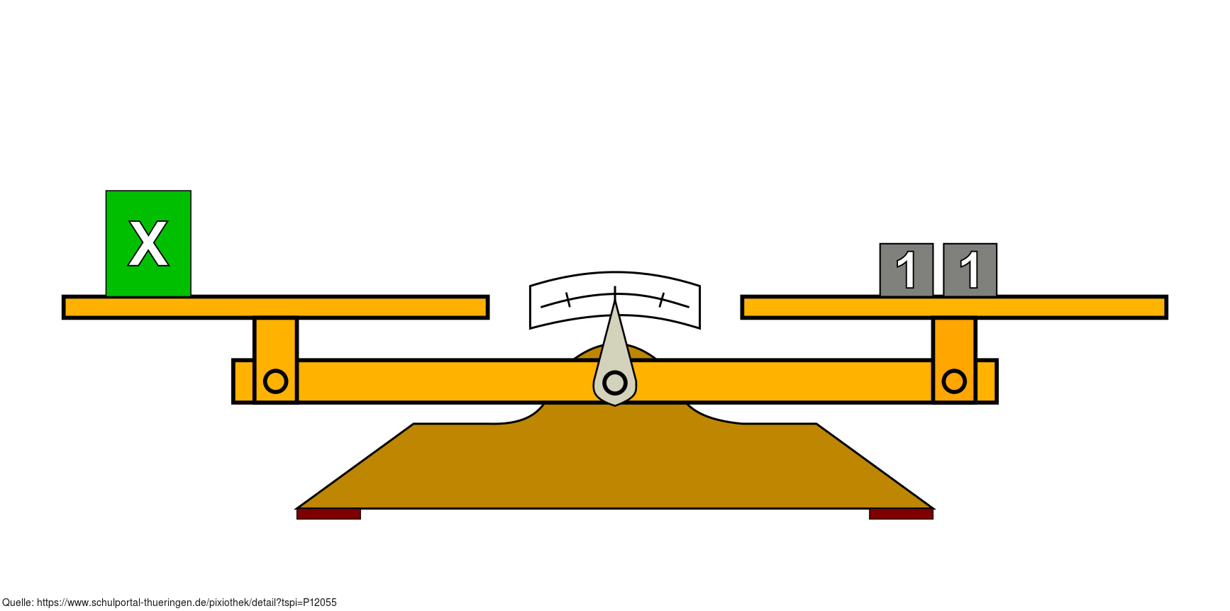 Das Bild gehört zur Serie "Mathematik, Gleichungen". Es veranschaulicht die Lösung einer linearen Gleichung durch Äquivalenzumformung mit dem Bild einer Waage. Zur Gleichung 22 veranschaulichen die Bilder 22-1 bis 22-4 die Umformungsschritte. Das Bild ist unter CC0 lizenziert und kann somit frei verwendet werden.