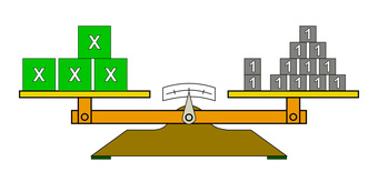Das Bild gehört zur Serie "Mathematik, Gleichungen". Es veranschaulicht die Lösung einer linearen Gleichung durch Äquivalenzumformung mit dem Bild einer Waage. Zur Gleichung 26 (5x - 1 = x + 11) veranschaulichen die Bilder 26-1 bis 26-5 die Umformungsschritte. Das Bild ist unter CC0 lizenziert und kann somit frei verwendet werden.