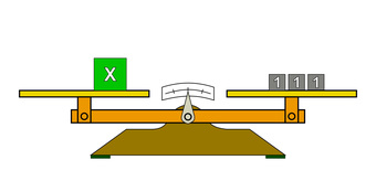 Das Bild gehört zur Serie "Mathematik, Gleichungen". Es veranschaulicht die Lösung einer linearen Gleichung durch Äquivalenzumformung mit dem Bild einer Waage. Zur Gleichung 26 (5x - 1 = x + 11) veranschaulichen die Bilder 26-1 bis 26-5 die Umformungsschritte. Das Bild ist unter CC0 lizenziert und kann somit frei verwendet werden.