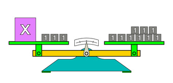 Das Bild gehört zur Serie "Mathematik, Gleichungen". Es veranschaulicht eine linearen Gleichung durch Körper auf einer Waage. Das Bild ist unter CC0 lizenziert und kann somit frei verwendet werden.