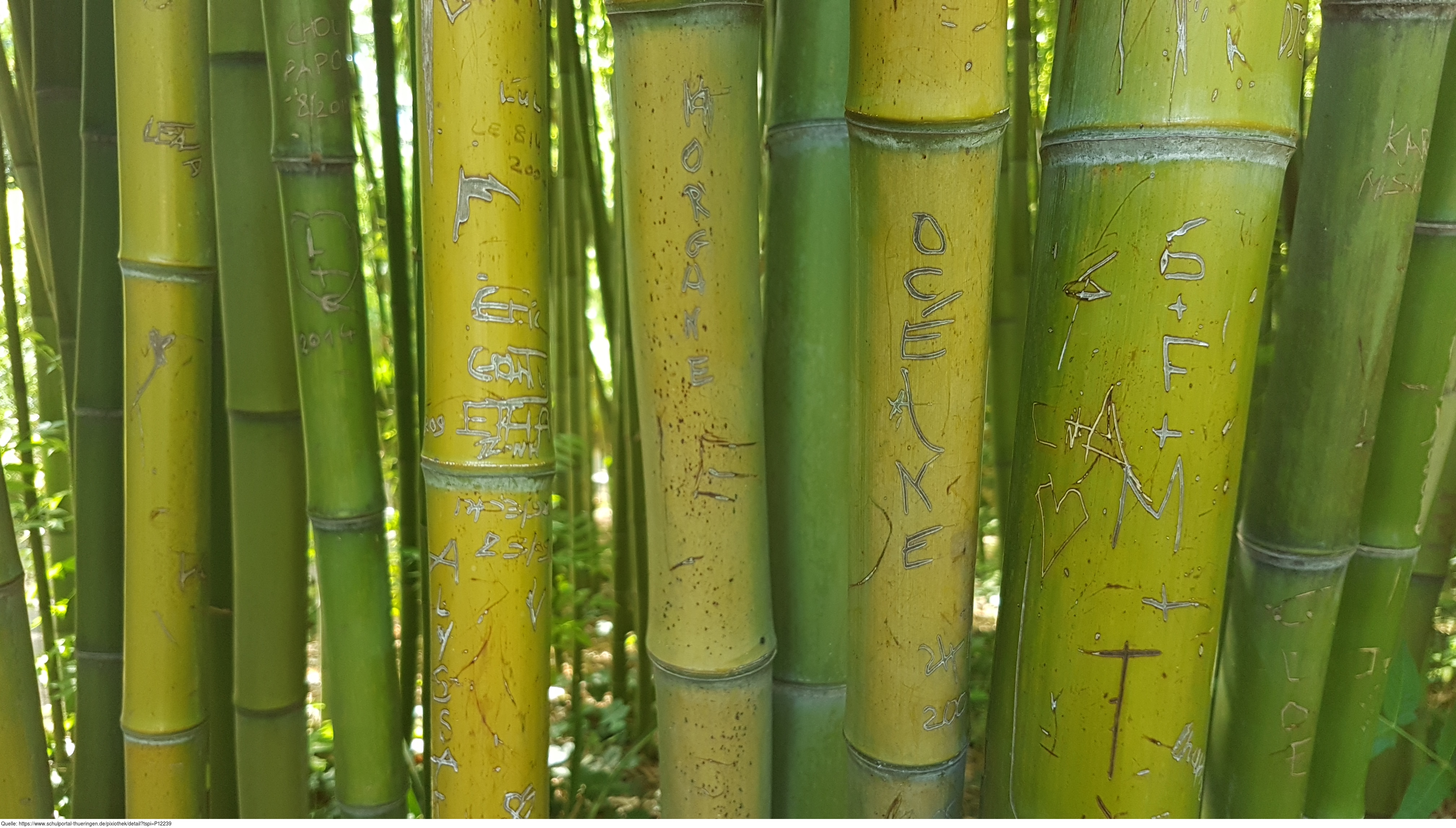 Das Foto zeigt Bambus in einem Bambuswald. Bambus (Bambusoideae) ist eine Unterfamilie aus der Familie der Süßgräser. Es gelten die Nutzungsbedingungen der Mediothek und Pixiothek.