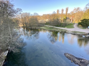 Das Bild zeigt ein Motiv aus dem Park an der Ilm in Weimar vom April 2020 in der Zeit des Lockdowns. Im Wasser zu sehen ist eine Bisamratte. Es gelten die Nutzungsbedingungen der Mediothek und Pixiothek.