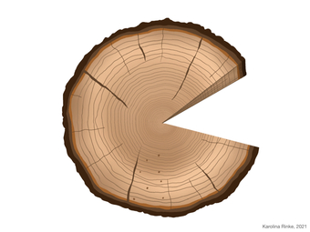 Die Grafik gehört zur Serie "Holz". Das Bild zeigt den Querschnitt eines Baumstammes, farbig, ohne Beschriftung. Es gelten die Nutzungsbedingungen der Mediothek und Pixiothek.
