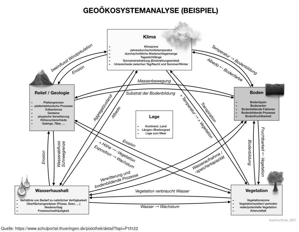 Das Bild zeigt das Beispiel einer Geoökosystemanalyse. Bild-Variante: s/w; vollständig beschriftet. Es gelten die Nutzungsbedingungen der Mediothek und Pixiothek.