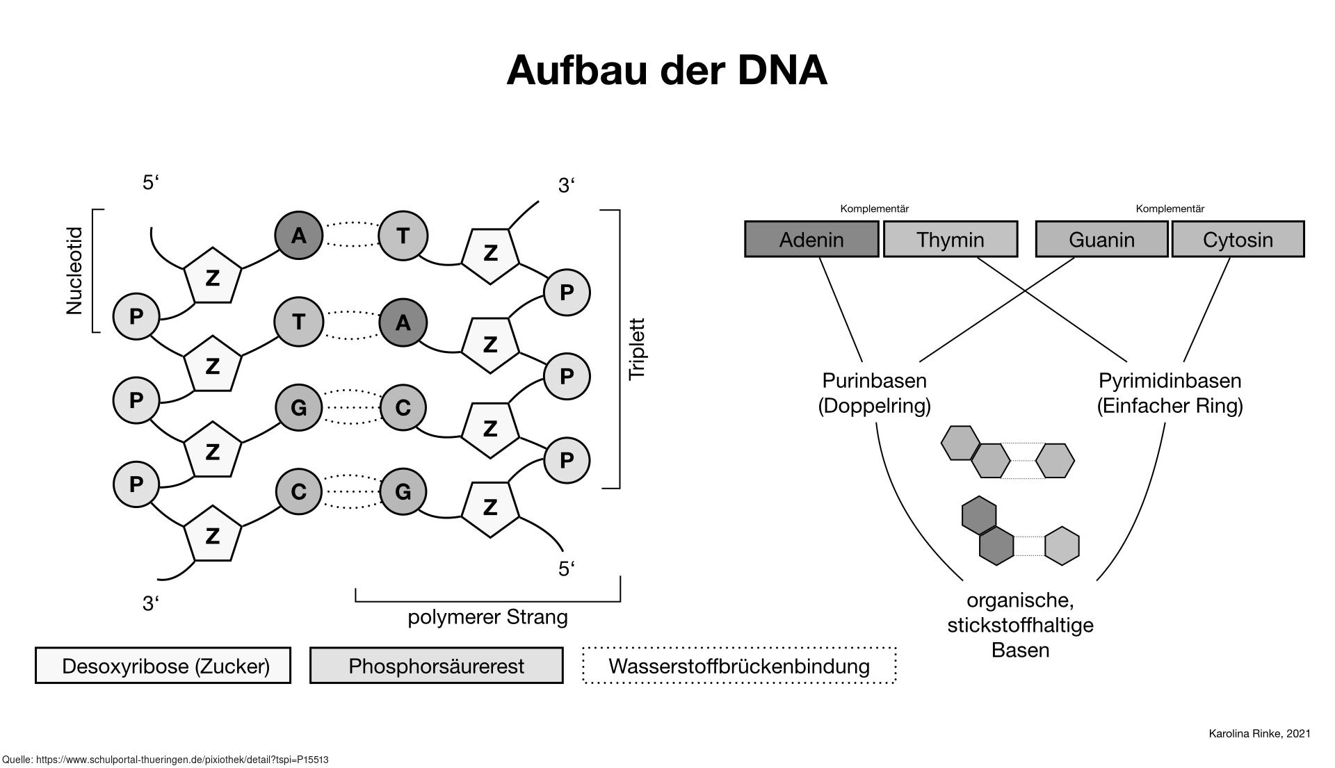 Das Bild verdeutlicht den Aufbau der DNA. Bild-Variante: s/w; beschriftet. Es gelten die Nutzungsbedingungen der Mediothek und Pixiothek.