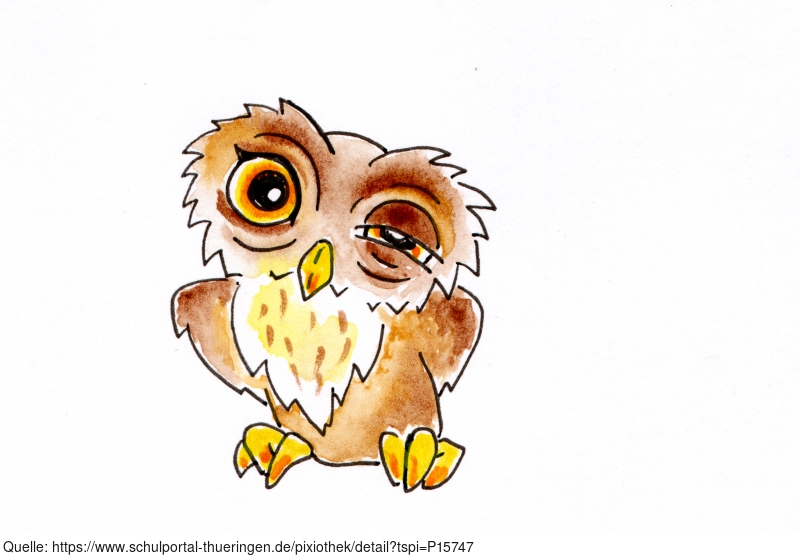 Das Bild gehört zur Serie "Witzige Fakten über Tiere". Es zeigt eine gezeichnete Eule. Der ursprüngliche Begleittext aus dem Projekt der Urheberin lautet so: "Blinzelnde Eulen. Eulen haben 3 Augenlider je Auge - eins zum Blinzeln, eins zum Schlafen und eins zum Säubern."