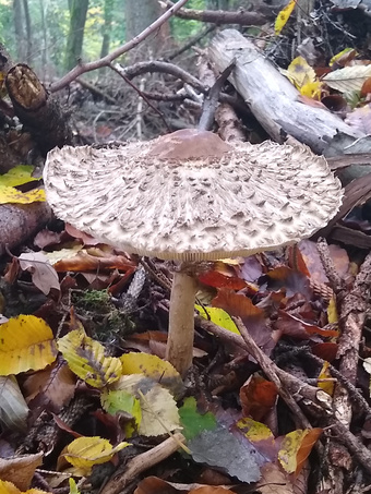 Das Bild zeigt einen Gemeinen Riesenschirmling (Macrolepiota procera). Das Bild ist unter CC0 lizenziert und kann somit frei verwendet werden.