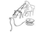 Paul mikroskopiert mit Fernrohr