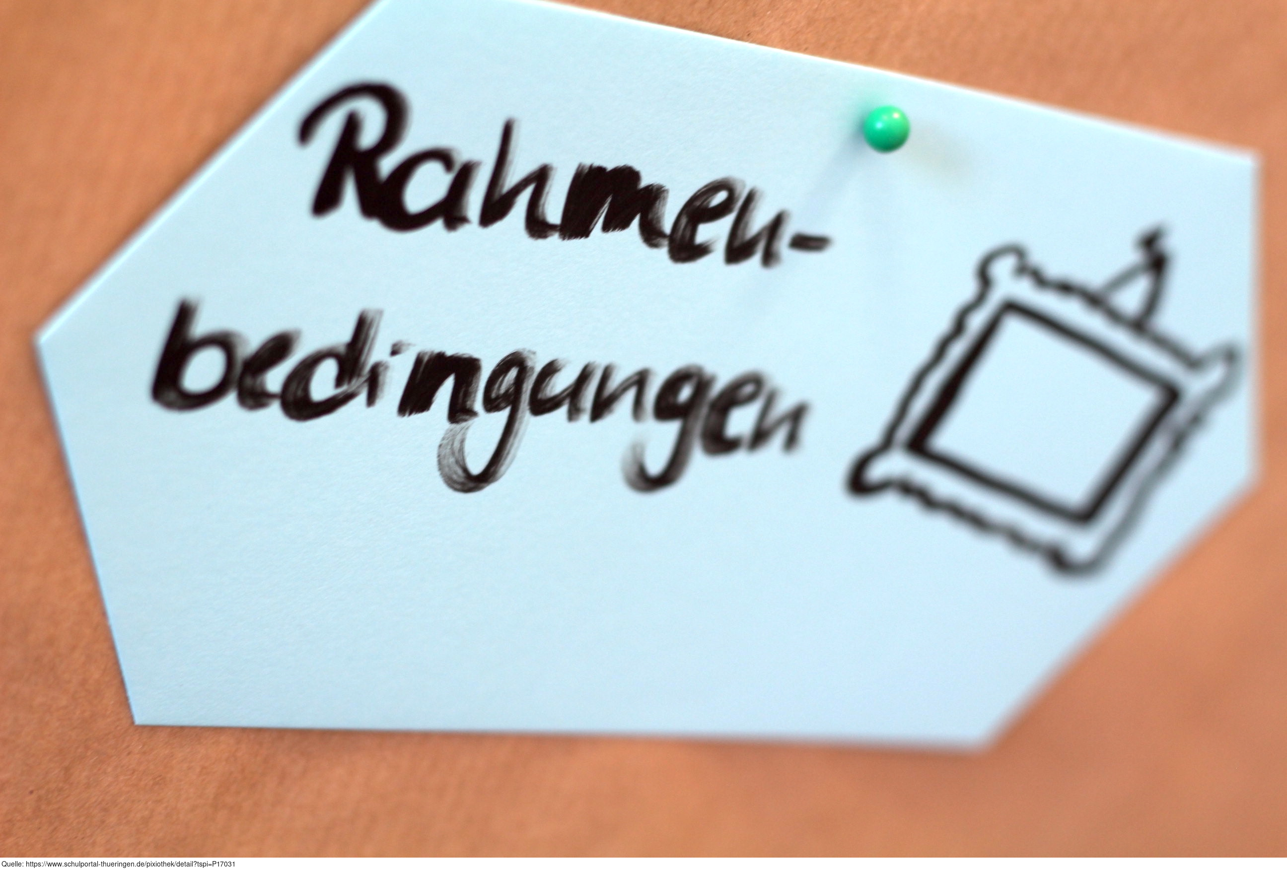 Das Bild zeigt eine Moderationskarte mit der Aufschrift "Rahmenbedingungen", fotografiert von Elisabeth Scherer für SeLL, HHU Düsseldorf. Es gelten die Nutzungsbedingungen der Mediothek und Pixiothek.