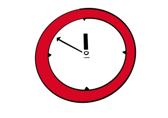 Das Bild zeigt eine Uhr mit rotem Rahmen, auf der es 10 vor 12 ist. Es wurde erstellt von Peter Bernardi für SeLL, HHU Düsseldorf. Es gelten die Nutzungsbedingungen der Mediothek und Pixiothek.