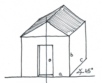 Das Bild gehört zur Serie "Projektionsarten". Es zeigt die Kavalierprojektion am Beispiel eines Gebäudes. Es gelten die Nutzungsbedingungen der Mediothek und Pixiothek.