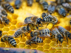 Bienenkönigin umringt von Arbeiterinnen