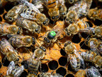 Das Bild gehört zur Serie "Saalfelder Honig", aufgenommen vom Imker Bernd Rümpler, Inhaber von saalfelder-honig.de. Zu sehen ist eine Honigbiene (Flugbiene) beim Sammeln auf einer Diptamblüte.
