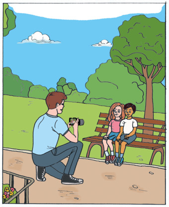 Vater möchte Kinder fotografieren