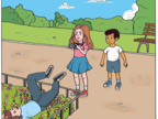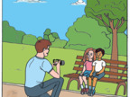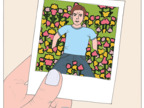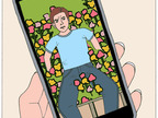 Das Bild zeigt einen Vater, der von seiner Tochter mit einem Handy fotografiert wird und währenddessen nach hinten in ein Blumenbeet fällt.. Das Bild kann als Teil einer Bildergeschichte verwendet werden - siehe Funktionslink "Weitere Bilder der Serie". Es gelten die Nutzungsbedingungen der Mediothek und Pixiothek.