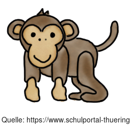 Das Bild zeigt einen gezeichneten Affen. Das Bild ist unter CC0 lizenziert und kann somit frei verwendet werden. Es ist neben weiteren Bildern auch hier zu finden: https://moodlelab.moodleschule.de/
