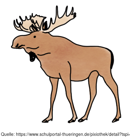 Das Bild zeigt einen gezeichneten Elch. Das Bild ist unter CC0 lizenziert und kann somit frei verwendet werden. Es ist neben weiteren Bildern auch hier zu finden: https://moodlelab.moodleschule.de/