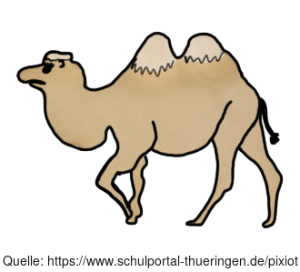 Das Bild zeigt ein gezeichnetens Kamel. Das Bild ist unter CC0 lizenziert und kann somit frei verwendet werden. Es ist neben weiteren Bildern auch hier zu finden: https://moodlelab.moodleschule.de/