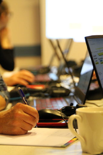 Das Bild ist Teil der Serie „Veranstaltungen“. Es zeigt Teilnehmer eines Workshops bei der Arbeit an ihren Rechnern bzw. mobilen Endgeräten. Es gelten die Nutzungsbedingungen der Mediothek und Pixiothek.
