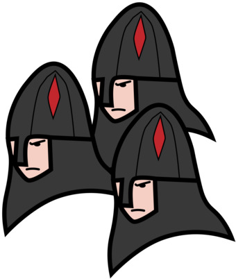 Das Bild zeigt drei gezeichnete Ritter, die böse blicken. Es stammt aus dem Projekt "Didactica Bavaria Bohemia" - Materialpakete daraus siehe "Verwandte Medien (Auswahl)". Das Bild ist unter CC0 lizenziert und kann somit frei verwendet werden.