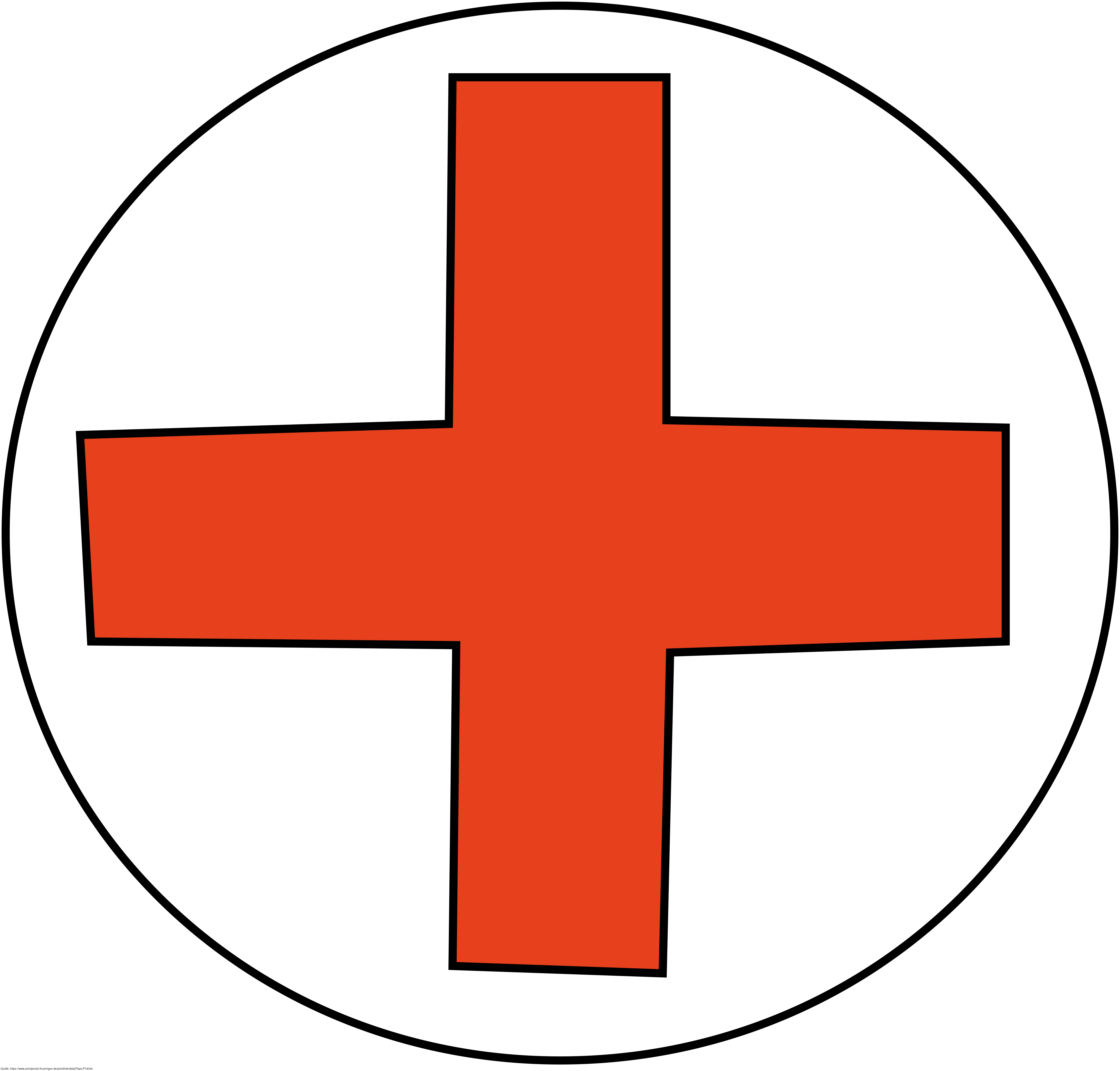Das Bild zeigt ein gezeichnetes rotes Kreuz in schwarzem Kreis, welches auch als Symbol des DRK (Deutsche Rotes Kreuz) Verwendung findet. Es stammt aus dem Projekt "Didactica Bavaria Bohemia" - Materialpakete daraus siehe "Verwandte Medien (Auswahl)". Das Bild ist unter CC0 lizenziert und kann somit frei verwendet werden.