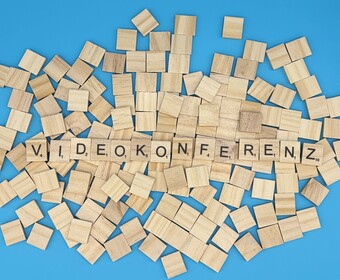 Aus Buchstaben wurde das Wort "Videokonferenz" gelegt. Es gelten die Nutzungsbedingungen der Mediothek und Pixiothek.