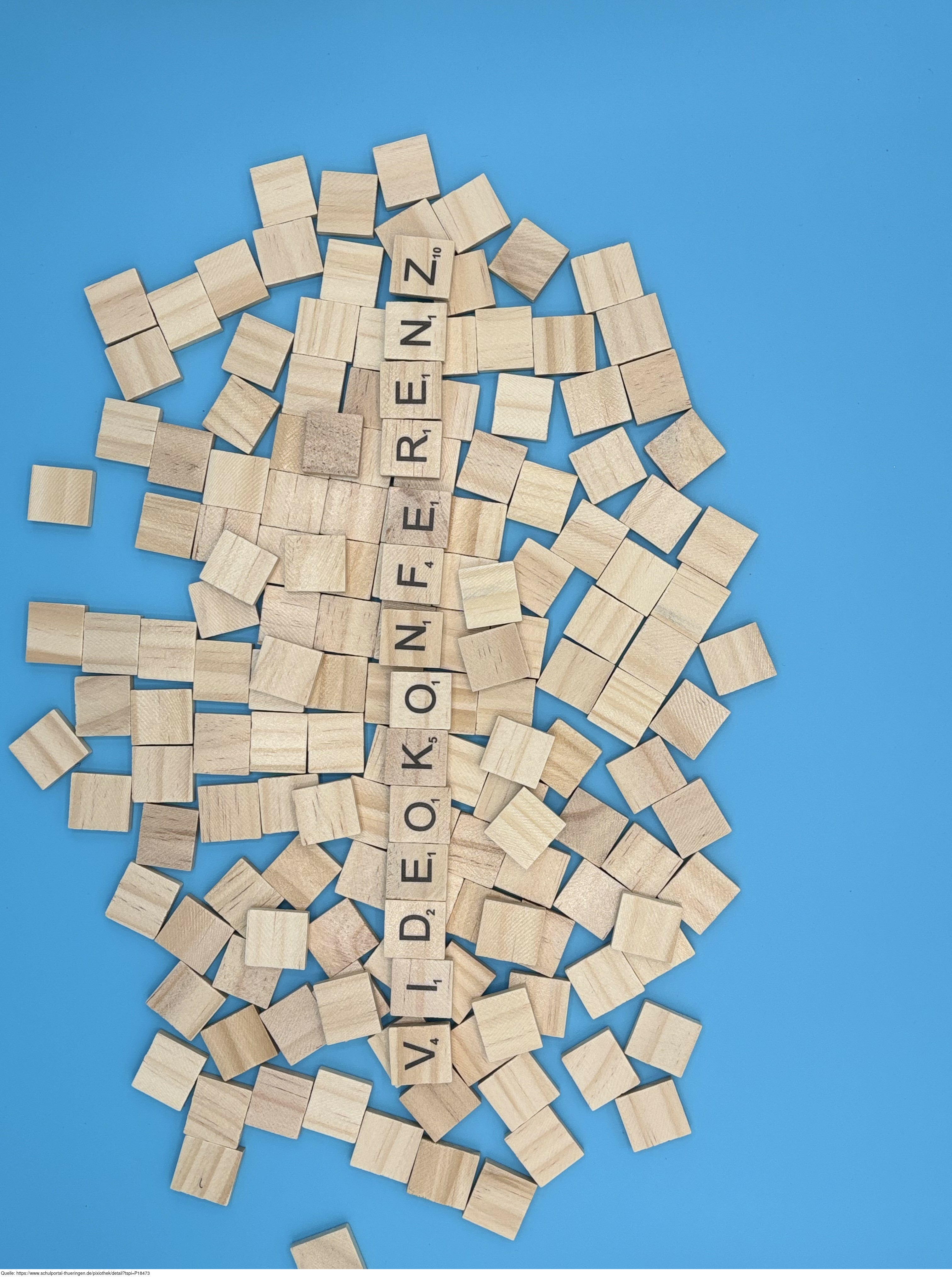 Aus Buchstaben wurde das Wort "Videokonferenz" gelegt. Es gelten die Nutzungsbedingungen der Mediothek und Pixiothek.
