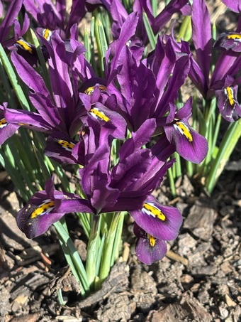 Das Foto gehört zur Serie "Frühblüher". Es zeigt Blüten der Zwergiris. Die Netzblatt-Schwertlilie, auch Netzblatt-Iris, Zwerg-Iris oder Netz-Schwertlilie genannt, erhielt ihren Artnamen wegen der netzartigen Zwiebelhaut. Es ist eine Pflanzenart, die zur Gattung Schwertlilien in der Familie der Schwertliliengewächse gehört.