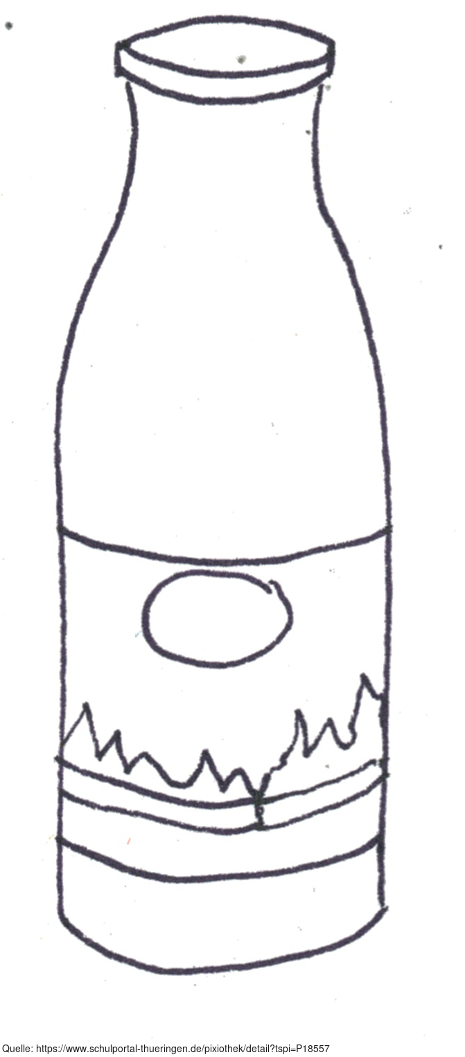 Das Bild zeigt eine gezeichnete Flasche Milch (s/w). Es gehört zur Serie "Ernährungspyramide zum Basteln und Gestalten" und findet u.a. im gleichnamigen Lernobjekt unter https://www.schulportal-thueringen.de/web/guest/media/detail?tspi=18517 Verwendung. Es gelten die Nutzungsbedingungen der Mediothek und Pixiothek.