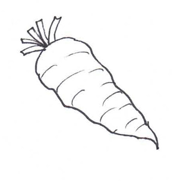 Das Bild zeigt eine gezeichnete Möhre (s/w). Es gehört zur Serie "Ernährungspyramide zum Basteln und Gestalten" und findet u.a. im gleichnamigen Lernobjekt unter https://www.schulportal-thueringen.de/web/guest/media/detail?tspi=18517 Verwendung. Es gelten die Nutzungsbedingungen der Mediothek und Pixiothek.