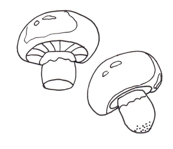 Das Bild zeigt zwei gezeichnete Pilze (s/w). Es gehört zur Serie "Ernährungspyramide zum Basteln und Gestalten" und findet u.a. im gleichnamigen Lernobjekt unter https://www.schulportal-thueringen.de/web/guest/media/detail?tspi=18517 Verwendung. Es gelten die Nutzungsbedingungen der Mediothek und Pixiothek.