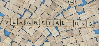 Aus Buchstaben wurde das Wort "Veranstaltung" gelegt. Es gelten die Nutzungsbedingungen der Mediothek und Pixiothek.