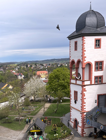 Das Bild entstand auf Osterburg in Weida. Die Burg befindet sich auf einem Berg im Zentrum der Stadt und wurde im 12. Jh. als romanische Befestigungsanlage in strategisch günstiger Lage errichtet. Ihr Name leitet sich vom lateinischen Neuostland ab, den Gebieten Ostthüringens, die auch heute noch als Osterland bezeichnet werden. Die Namensverbindung dient als Anlass, das alljährliche Osterfest hier in besonderer Weise zu feiern.